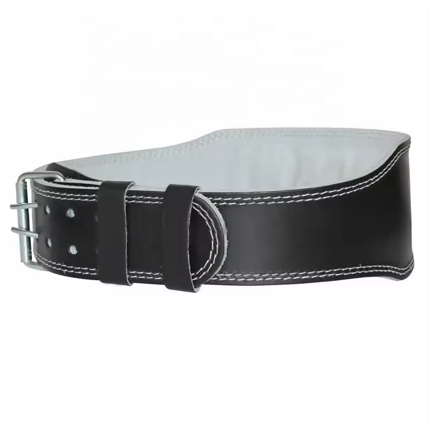 Black Leather Powerlifting Belt Custom Padded Gym Belt Heavy Weight Lifting Back Support Double Prong Stainless Steel Buckle