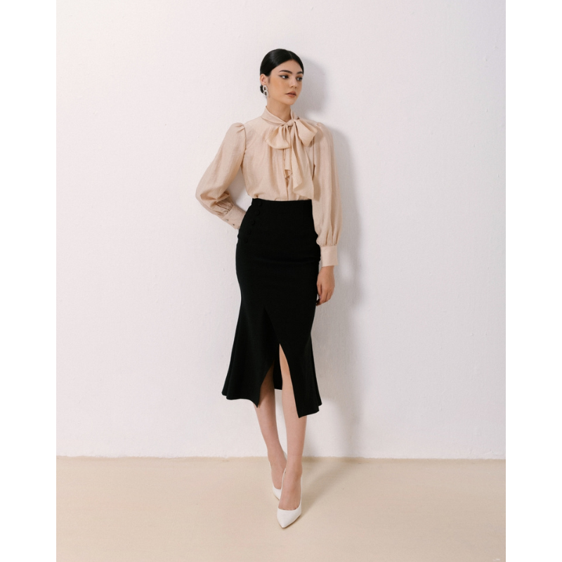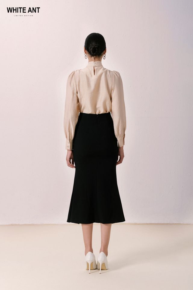 Black Long Women's Skirts A-line Skirt REBECCA FISHTAIL MIDI SKIRT With Front Split 85%Polyester 15%Spandex WHITE ANT Vietnam