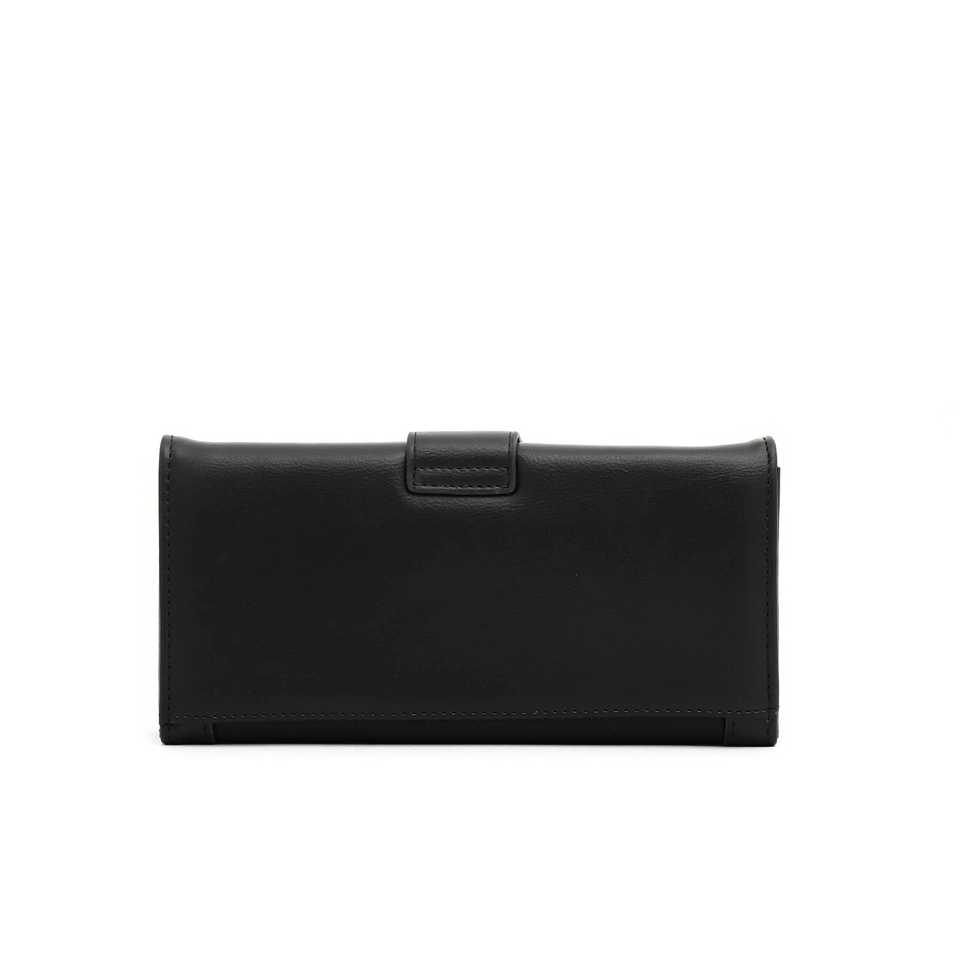 Black Luxury Ladies Wallet P70752 Genuine Vintage Leather Card Holder with Open Closure Saffiano Pattern