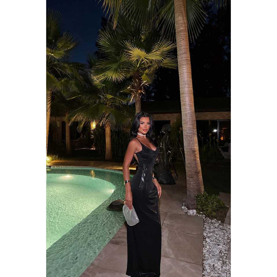 Black Madelyn Empire Waist Formal Party Dress Shiny Long Slit Sheath with Sequins & Beading Size XL for Prom