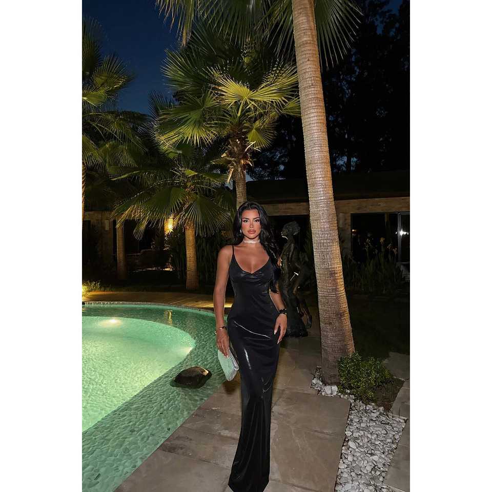 Black Madelyn Empire Waist Formal Party Dress Shiny Long Slit Sheath with Sequins & Beading Size XL for Prom