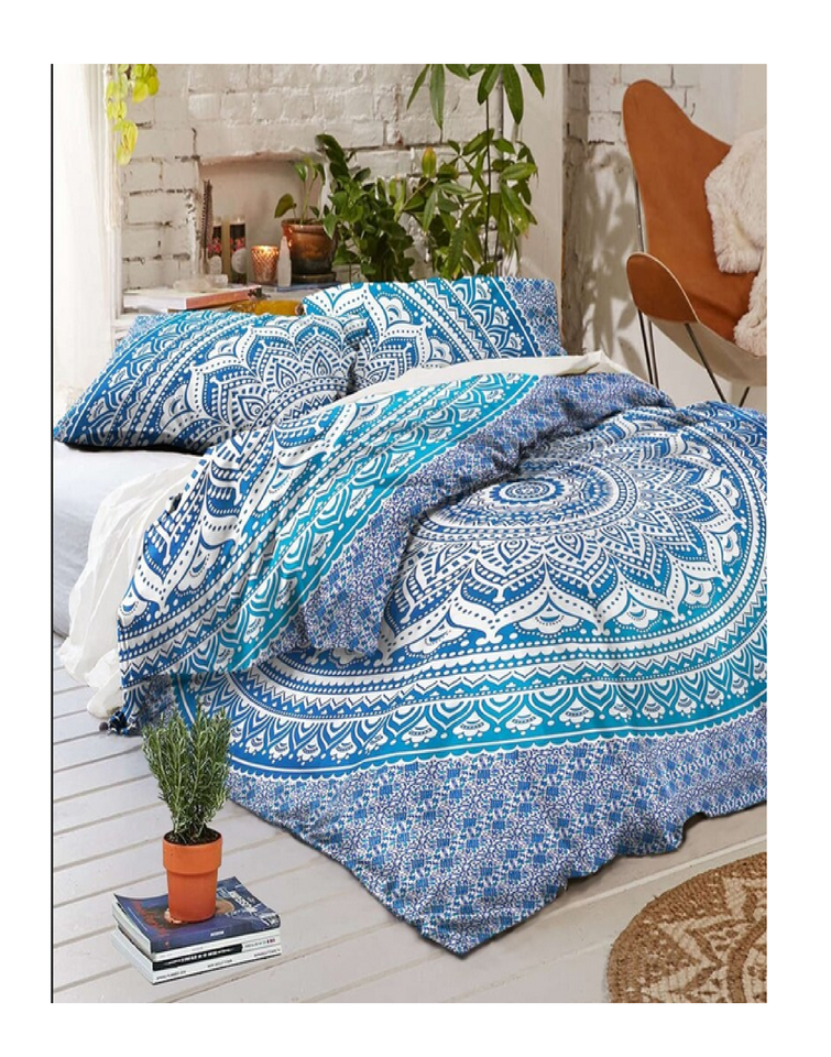 Black Mandala Ombre Cotton Quilt Comforter Bedding Bohemian Hippie Handmade Reversible Duvet Cover Bedspreads Pillowcase Set