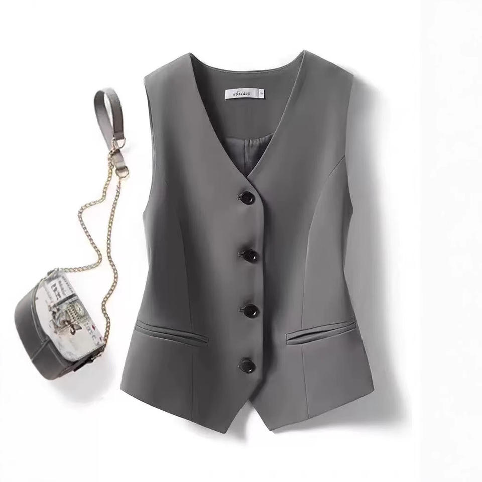 Black Mandarin Collar Small Vintage Blazer Vest for Women Short Layered Sleeveless Vest Top for Spring Autumn Summer