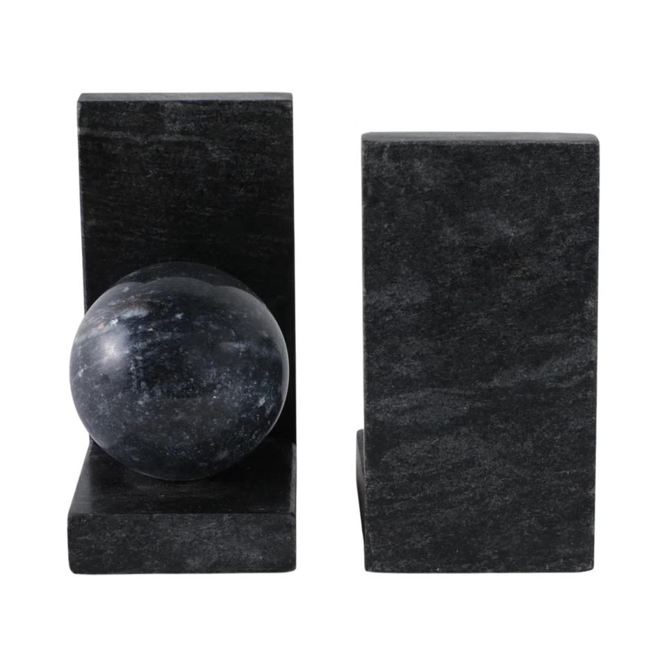 Black Marble Bookends Modern Geometric Stone Shelf Decor Contemporary Luxury Sphere Book Supports Heavy Weighted Natural Stone