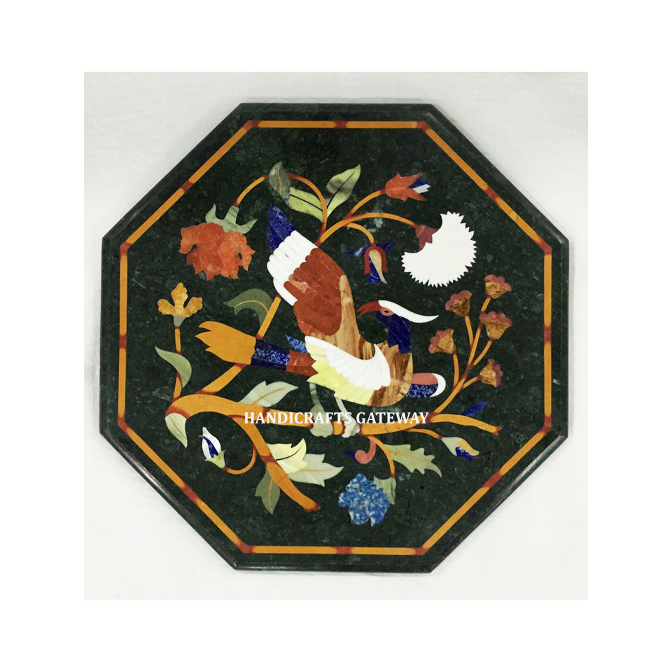 Black Marble Octagonal Shape Dining Table Top Inlay Work Fine Polishing Flowers Design For Home And Hotel Decoration Purpose