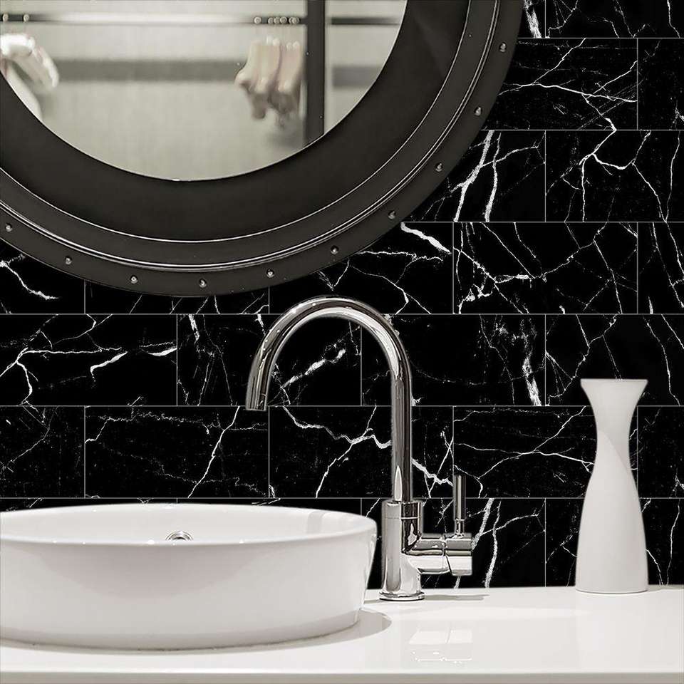 Black Marble PVC Wall Stickers Self-Adhesive Peel Stick Backsplash Tiles for Kitchen Bathroom Thickened Foam Fireproof