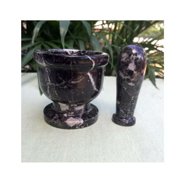 Black Marble Spice Grinder Mortar & Pestle for Kitchen Use