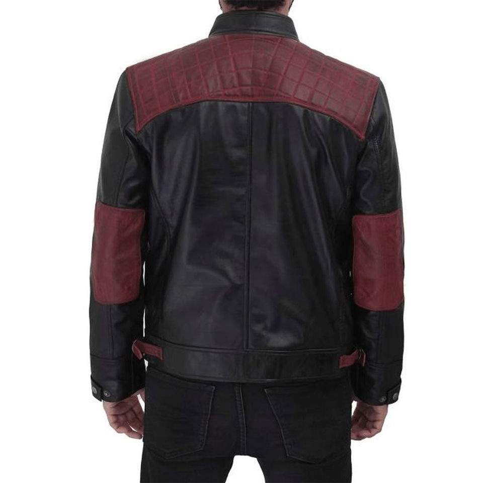Black Maroon Men's Jacket Front Zip Racer Design with Quilted Pattern 100% Cotton Comb Genuine Leather Stylish Comfortable