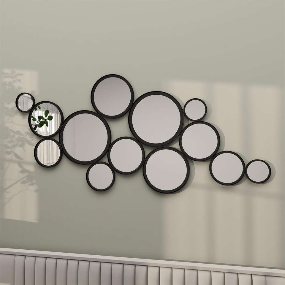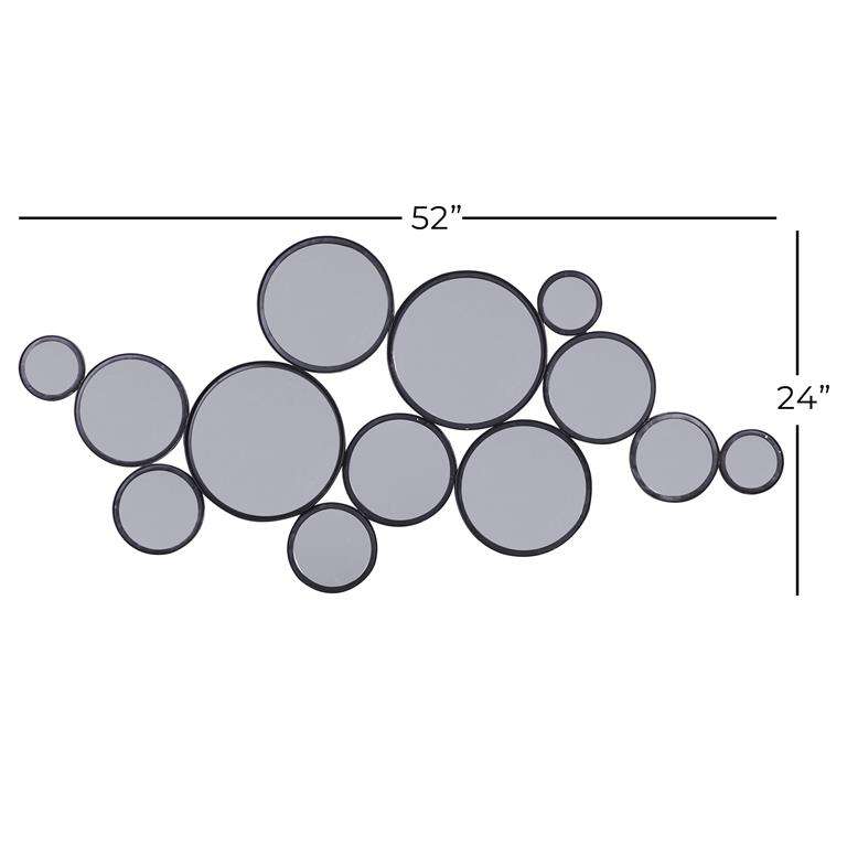 Black Metal Abstract Bubble Cluster Room Wall Mirror, 24" X 1" X 52"