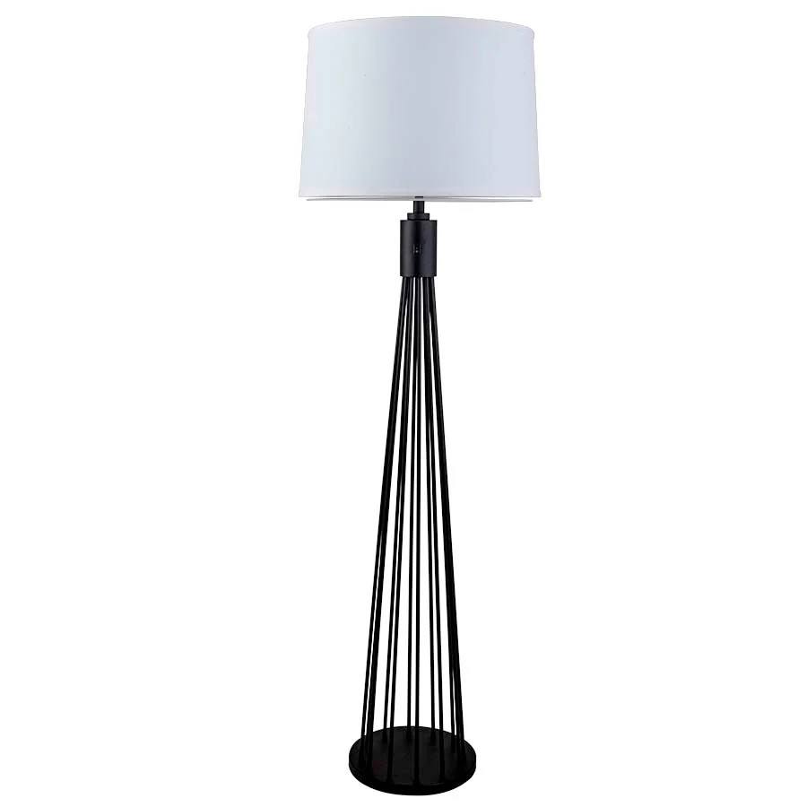 Black Metal Cantilever Floor Lamp with White Cylindrical Shade | Sleek Modern Lighting for Hotel Guest Room Decor