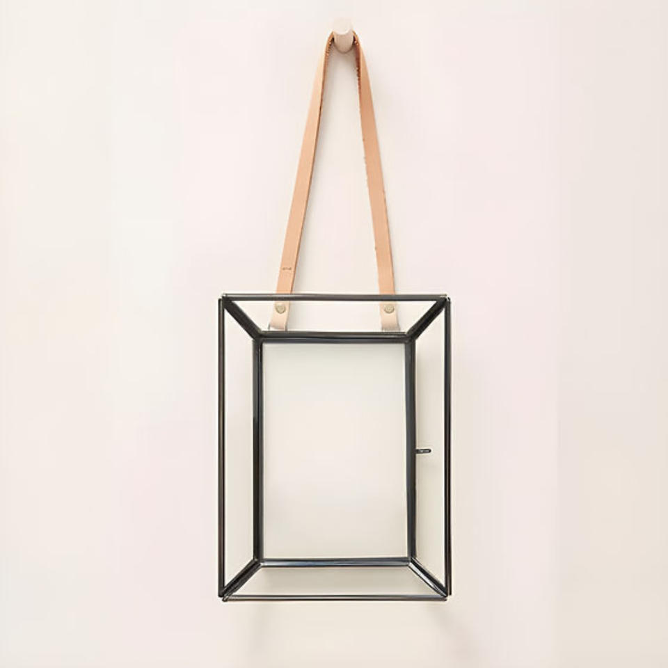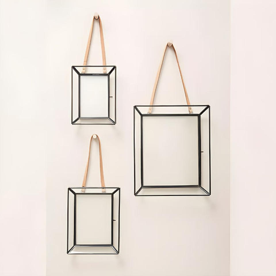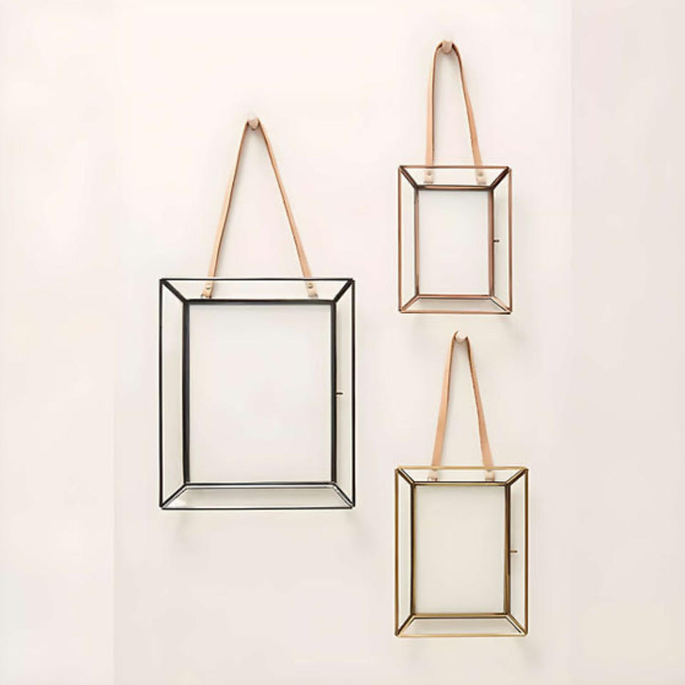 Black Metal Framed Glass Photo Frame with Unique 3D Effect and Leather Band for Pressed Flowers Pictures