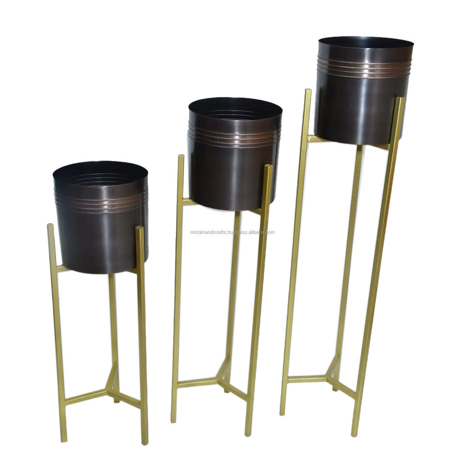 Black Metal Planter With Arched Gold Stand with Stand for Indoor Plants Elegant Home Balcony Garden Bathroom Kitchen Office
