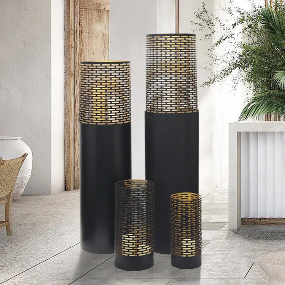 Black Metal T Light Lantern for Home Decoration New Design Ramadan Candle Holder Cylinder Shaped Votive Handmade Lanterns