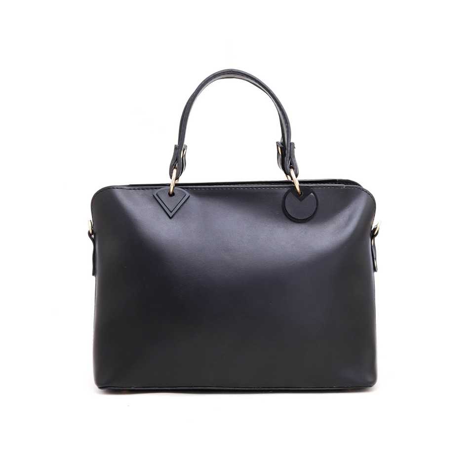 Black Modern Casual Hand Bag P55283 Ladies' Summer Tote Genuine Leather Lining Two Handles Button Closure Square Logo Pattern