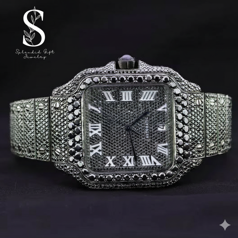 Black Moissanite Diamond Watch Iced Out Hip Hop Bussdown Watch Automatic Diamond Fashion Jewelry for Men's
