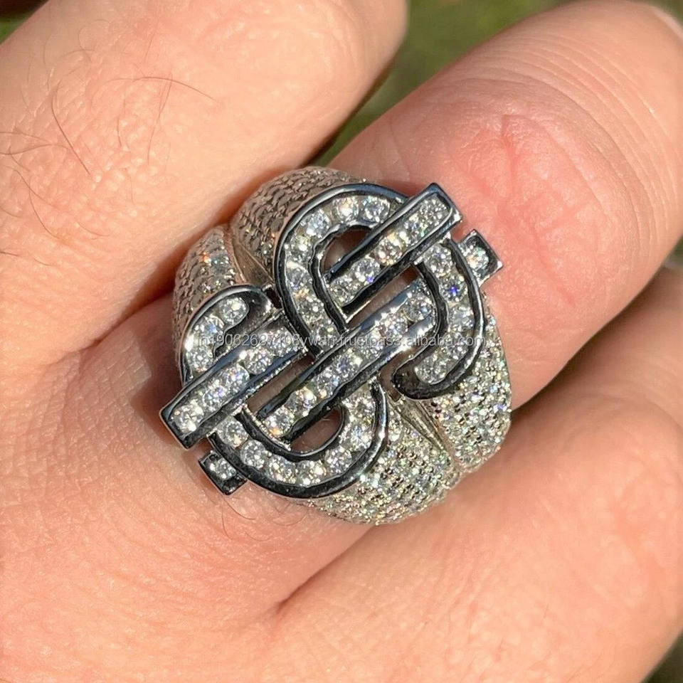 Black Moissanite Dollar Sign Ring Iced-Out Hip Hop Jewelry for Men with VVS Moissanite Stones
