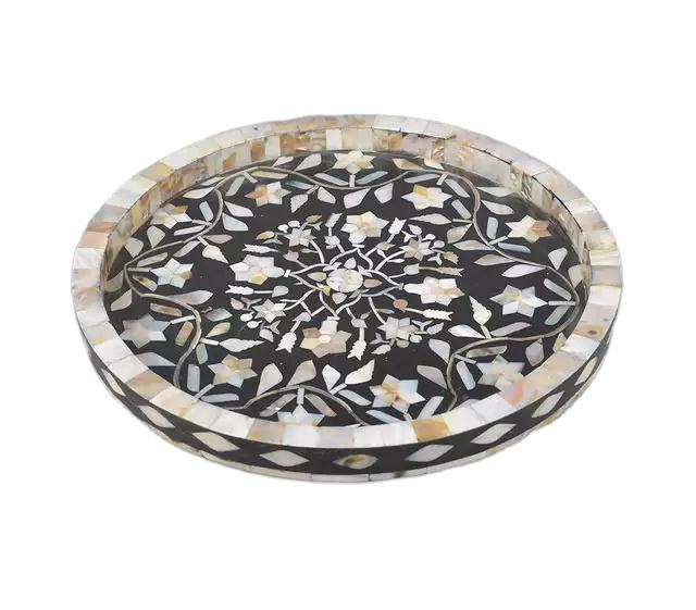 Black Mother of Pearl Tray MOP Inlay Serving Tray for Dining Table Restaurant Wedding and Home Decor Indian Supplier