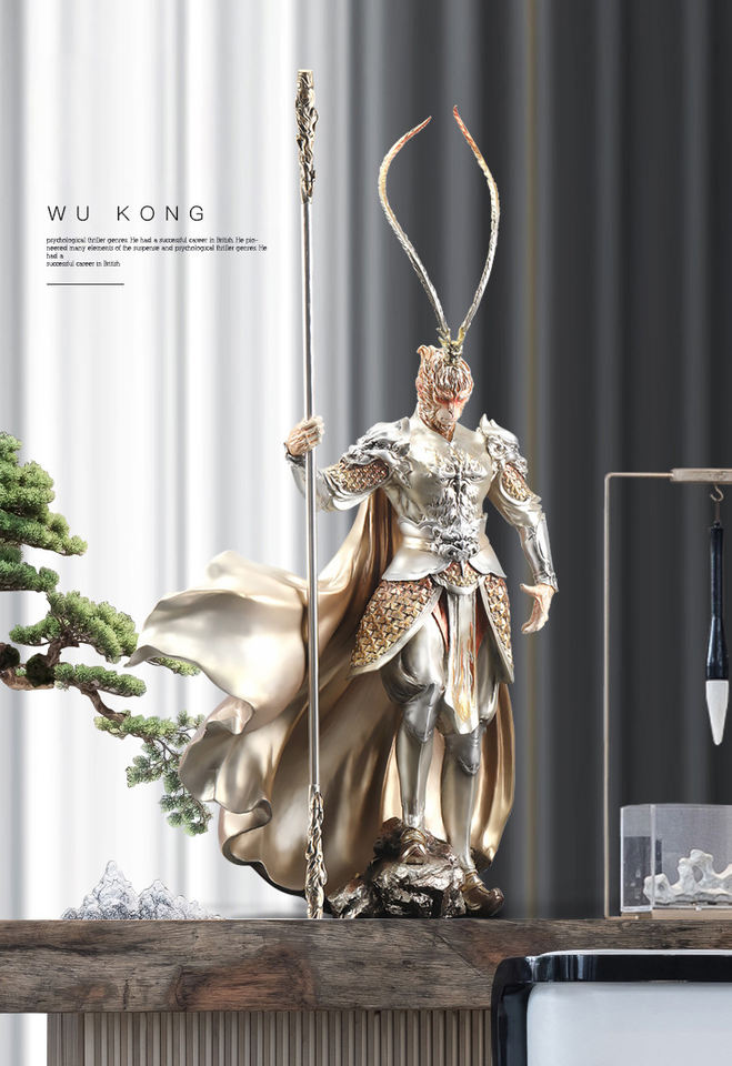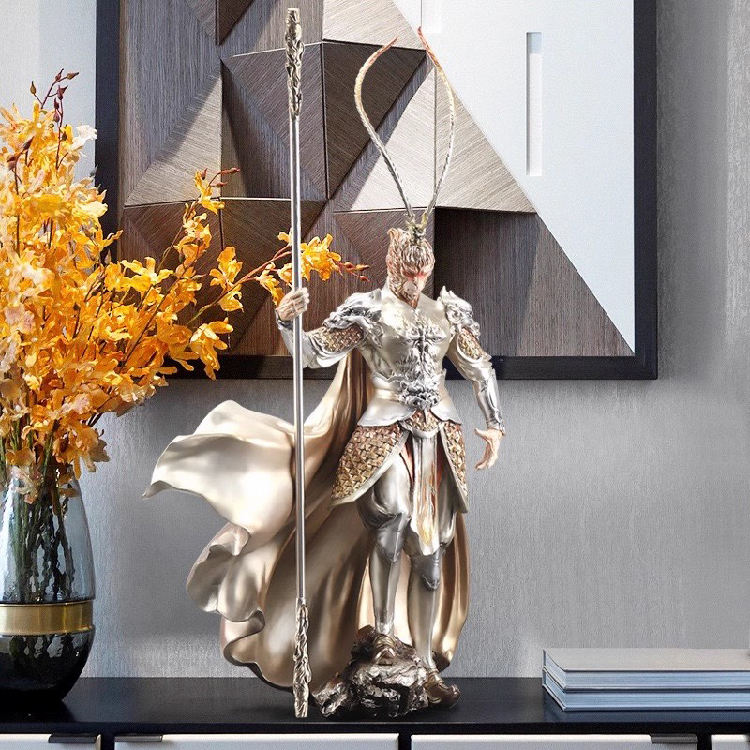 Black Mythological Monkey King Art Deco Piece for Room Cabinet Home Decoration, Sculpture Gift for Friends