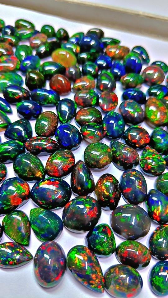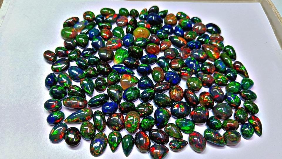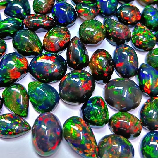 Black Natural Ethiopian Opal Cabochon Brilliant Cut Loose Gemstones Color Play 3-5 Carat Third Party Certified Top Grade Jewelry