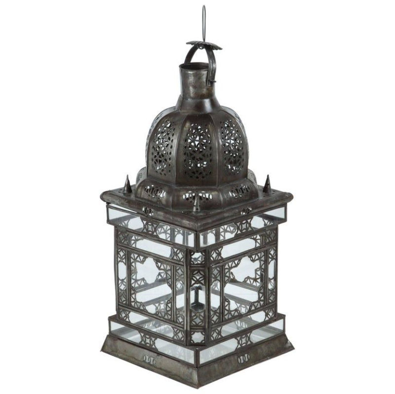Black Nickle Metal & Glass Candle Lantern Moroccan Decorative Hanging Lantern for Home and Wedding Tabletop Decoration