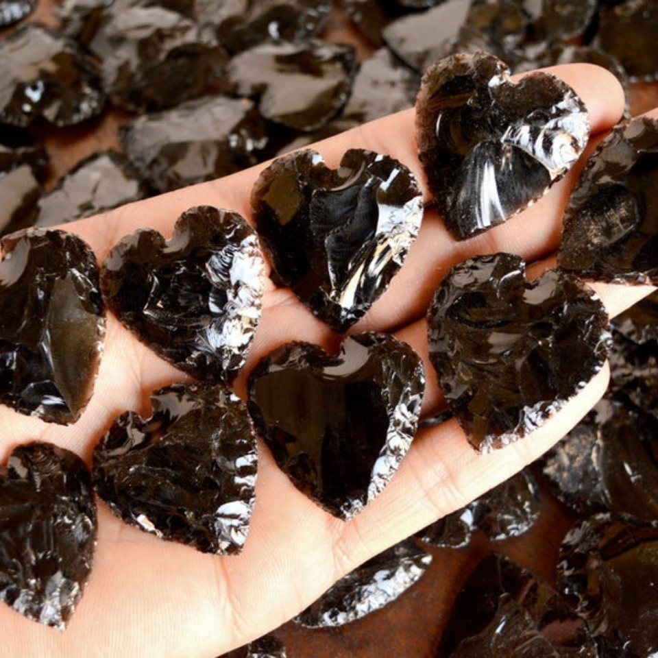 Black Obsidian Crescent Hearts | Wholesale crystals for jewelry making