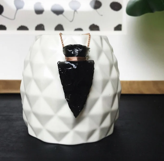 Black Obsidian Healing Crystal Natural Stone Copper Wire Wrapped Arrowhead Pendant Women Necklace Jewelry Love Gift Crafts