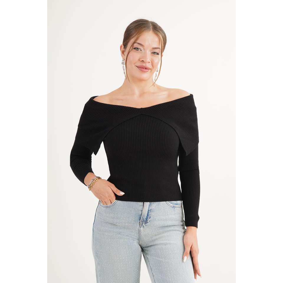 Black Off Shoulder Knit Top Women Full Sleeve Casual Soft Ribbed Sweater Long Sleeve Top For Everyday Wear