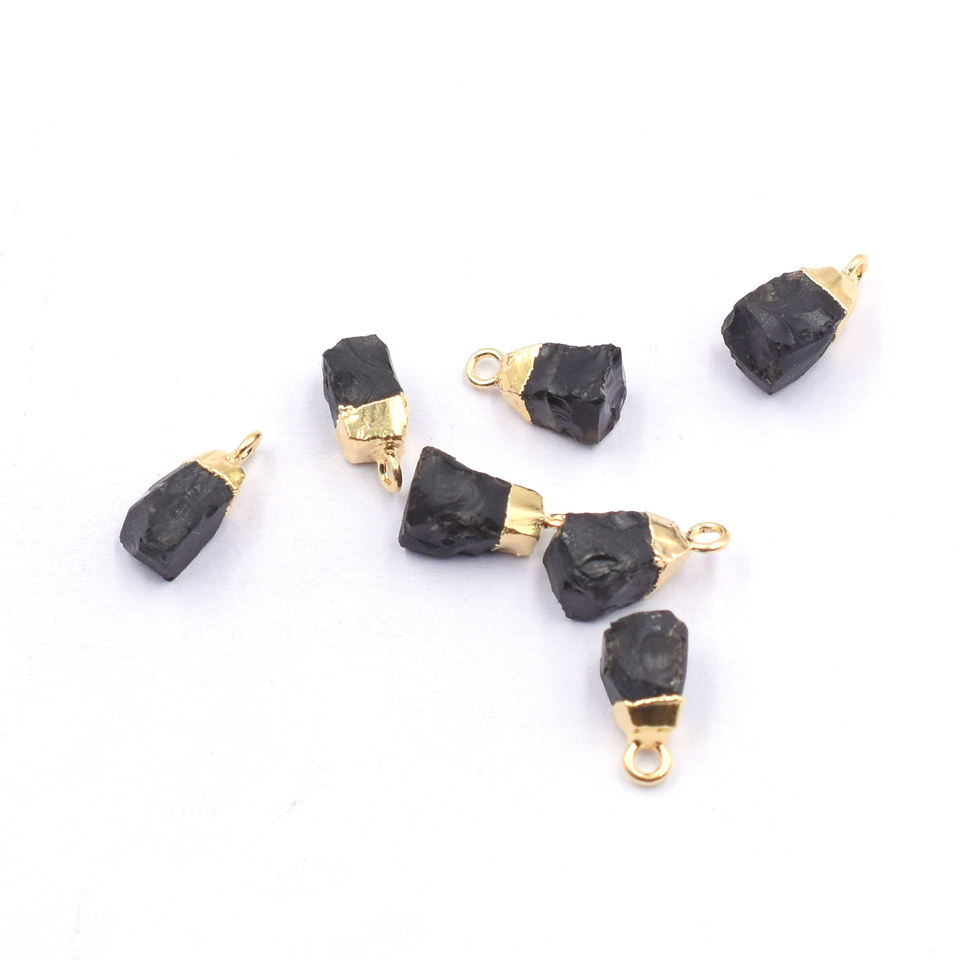 Black Onyx 11 to 13mm Brass Pendant Gold Plated Nature Style Charm for Jewelry Making with Bail Gemstone Findings