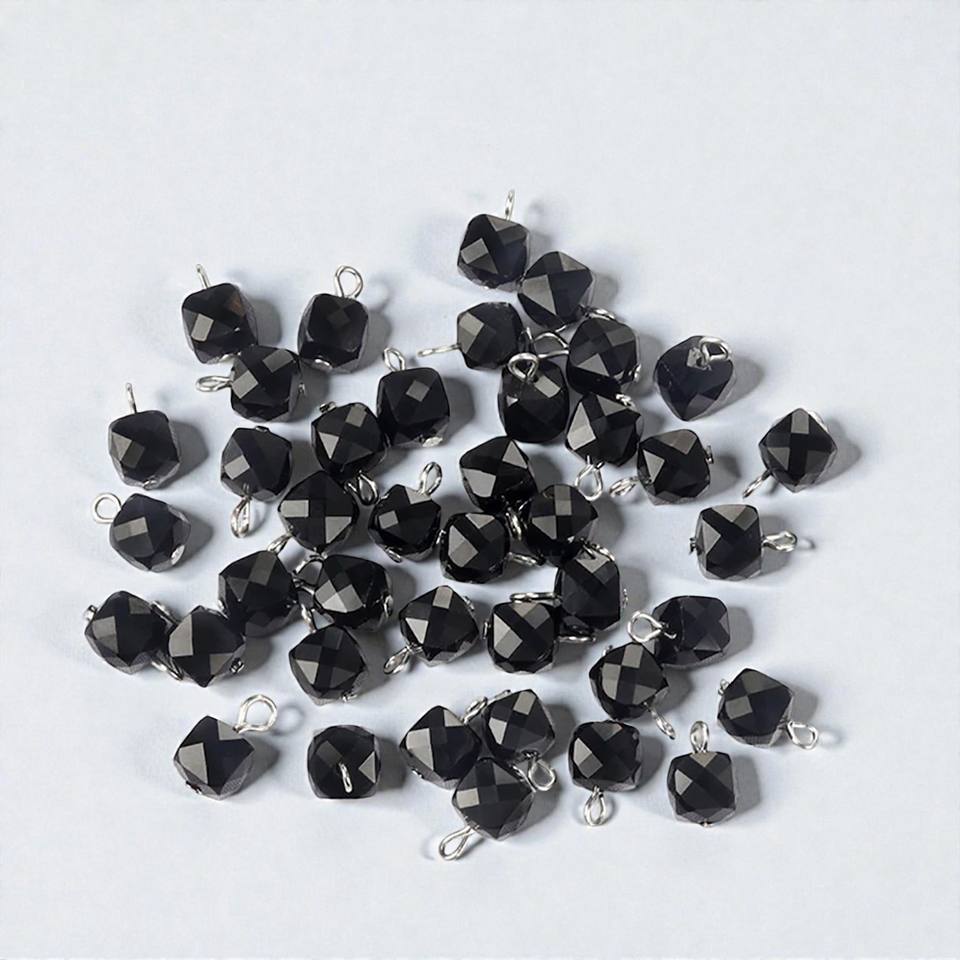 Black Onyx Cube Natural Faceted Gemstone Charms for Jewelry Making Necklace Bracelet Supplies Wholesale 14K Gold