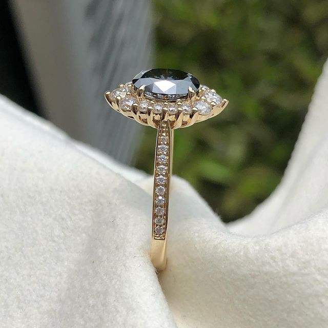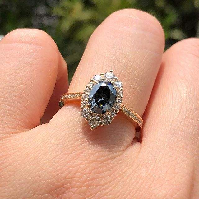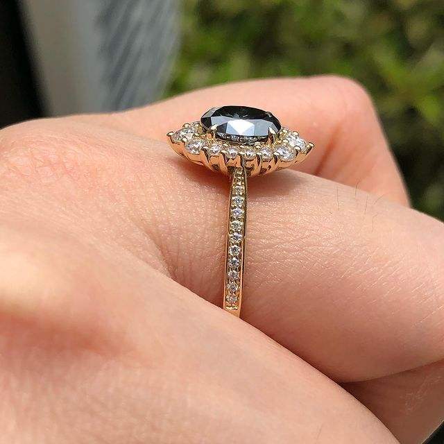 Black Onyx Diamond Ring Oval Cut Cubic Zirconia Engagement Ring 14k Solid Gold Halo Style Women's Jewelry