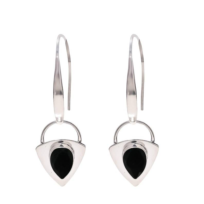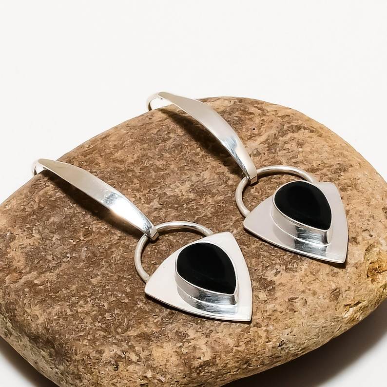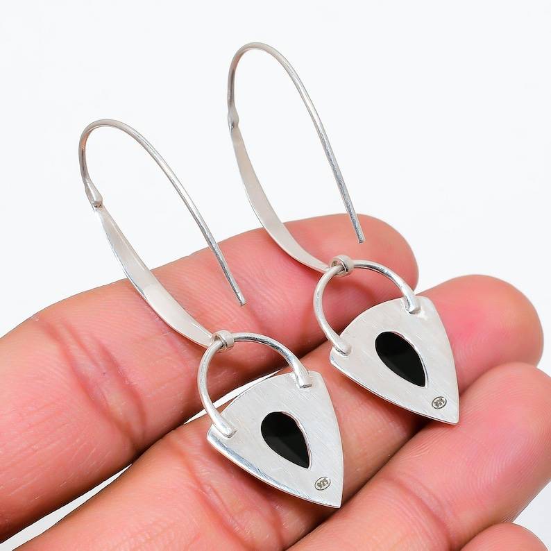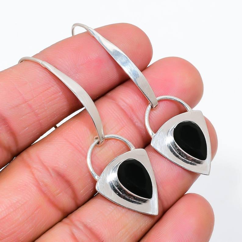 Black Onyx Drop Earrings Sterling Silver Handmade Gemstone Dangle Jewelry For Women Luxury Gift