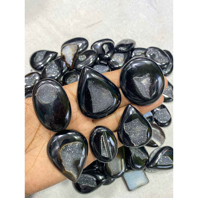 Black Onyx Druzy Cabochon Natural Window Druzy Loose Gemstone Mixed Shape for Jewelry Making