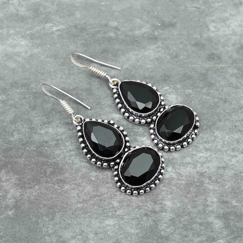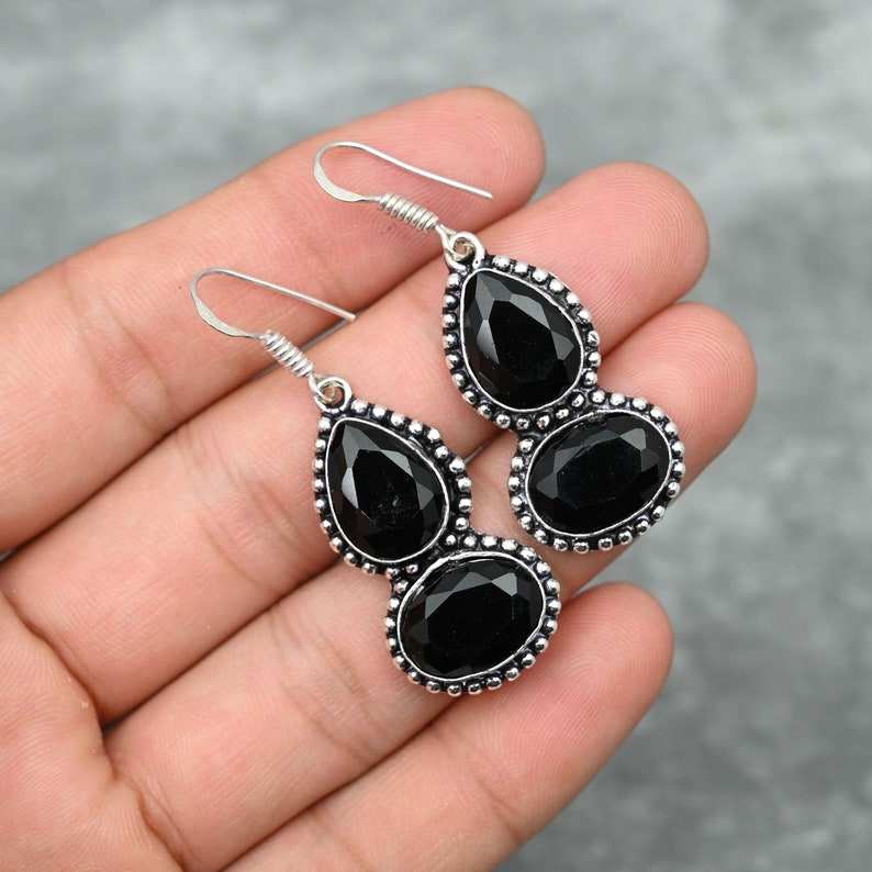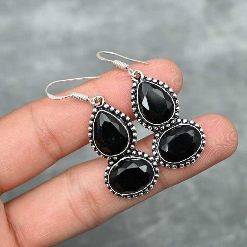 Black Onyx Earrings 925 Sterling Silver Handmade Jewelry Gemstone Earrings Gift For Her
