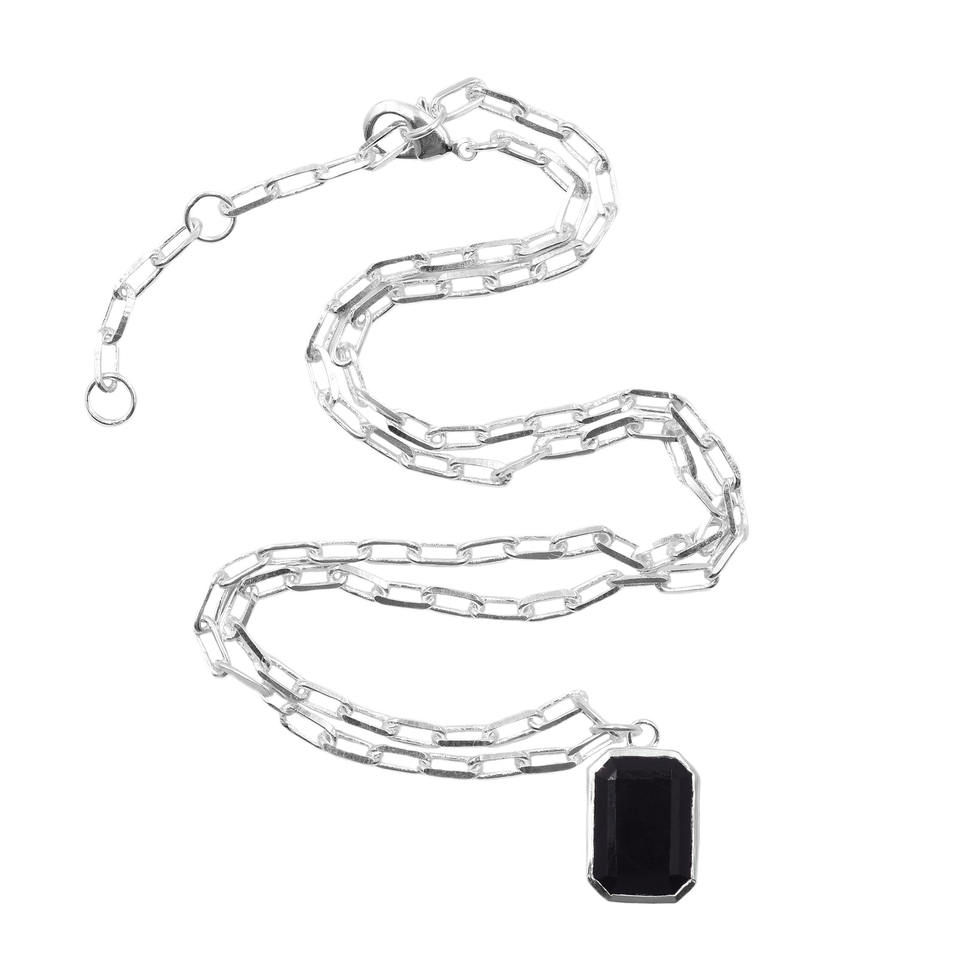 Product Name:Black Onyx Emerald Cut Sterling Silver Silver Plated Chain Necklace