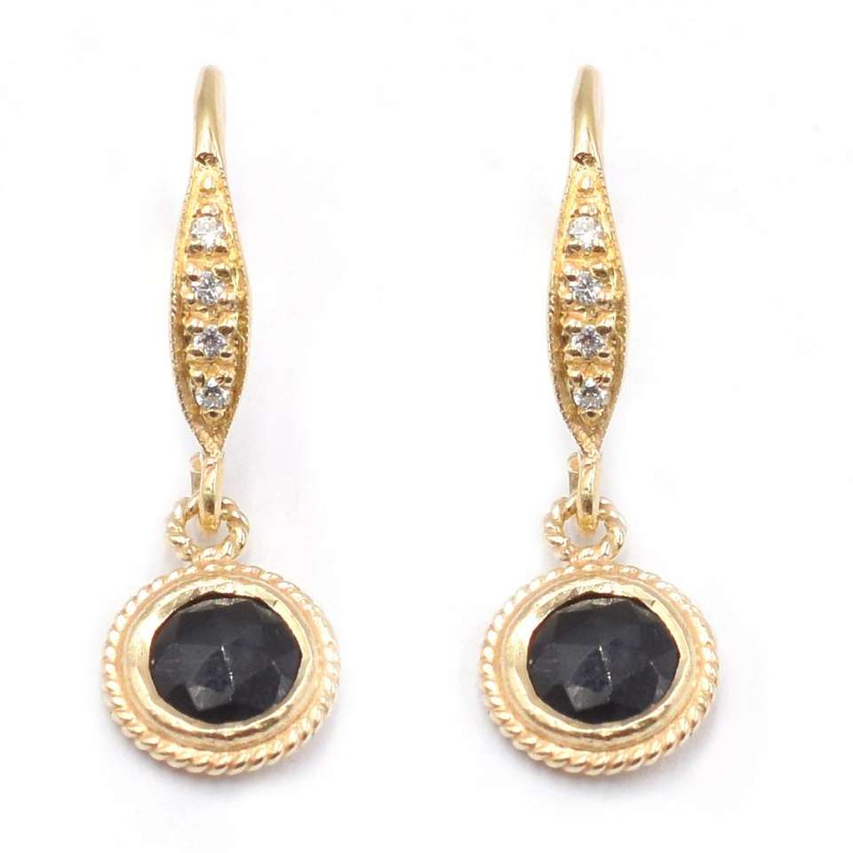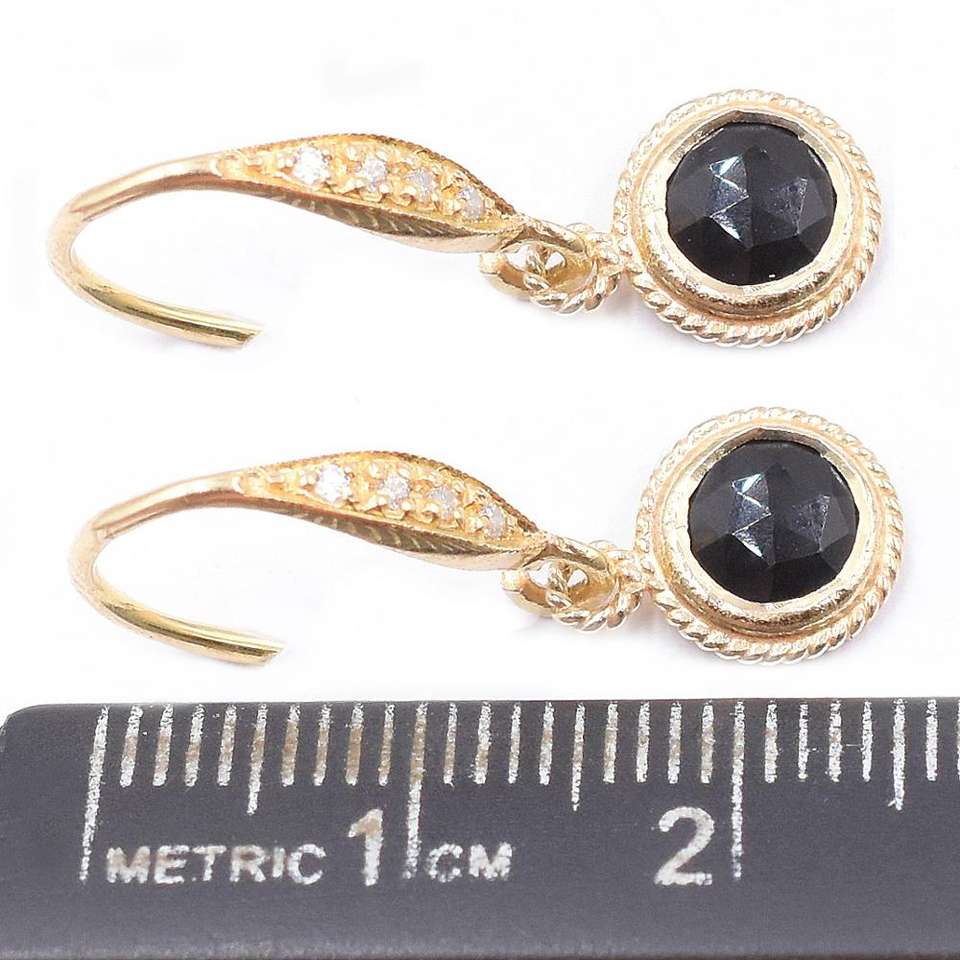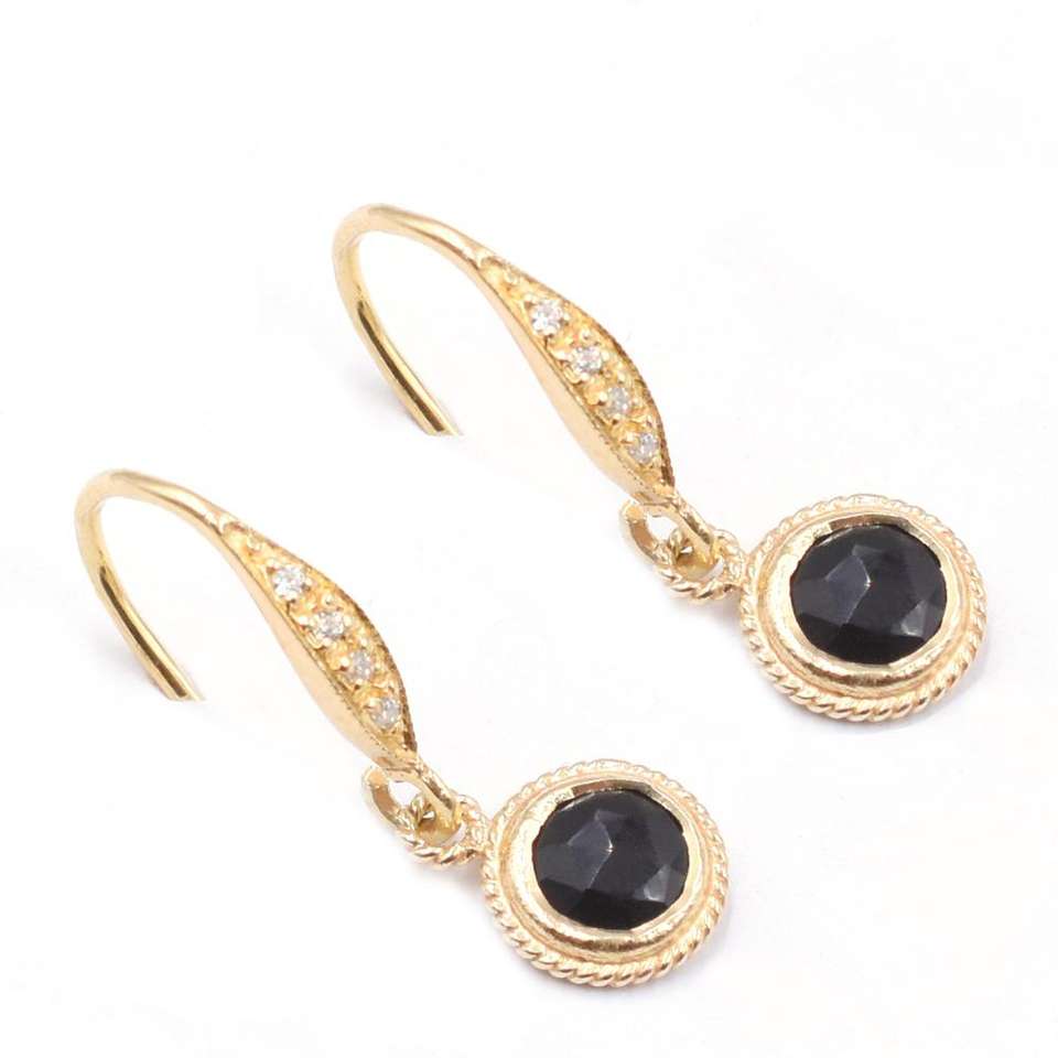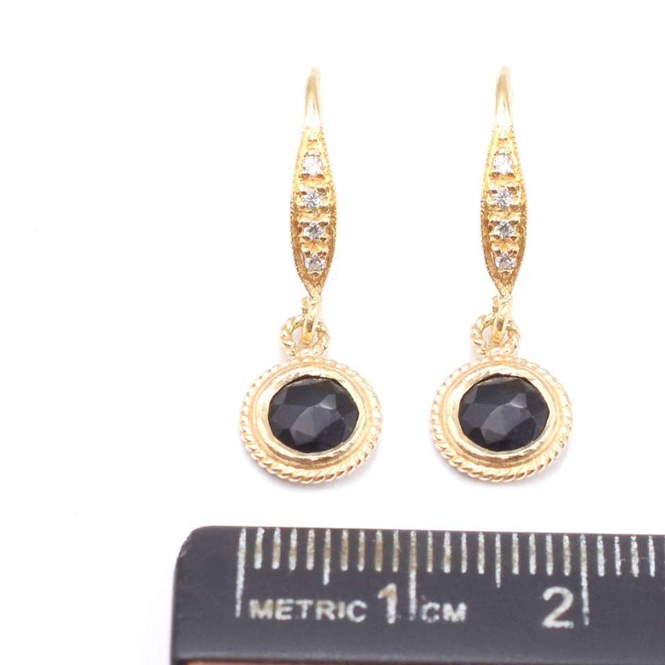 Black Onyx Faceted 24-26mm Round Shape Sterling Silver Bezel 14K & 18K Gold Plated Earrings Zircon Ear Wire Jaipur Gem Factory