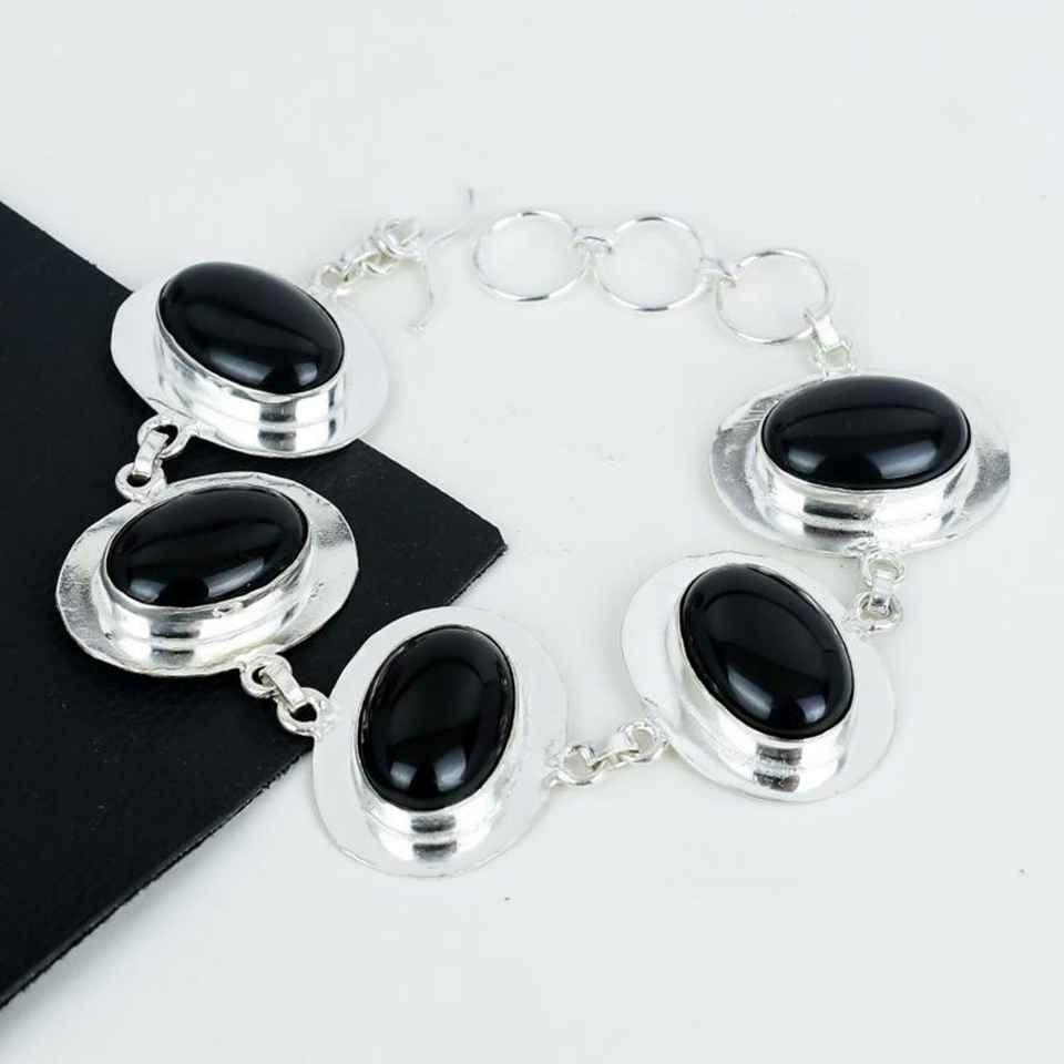 Black Onyx Gemstone Bracelet, 925 Sterling Silver Bracelet, Gemstone Bracelet, Popular Gemstone Bracelet, Silver Jewelry,