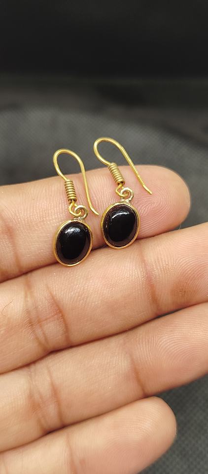 Black Onyx Gemstone Drop Earrings Vintage Style Gold Plated Brass Oval Shape for Weddings Fine Jewelry for Women