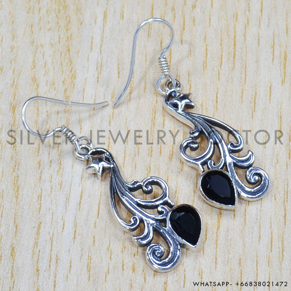 Black Onyx Gemstone Earring 925 Sterling Silver Handmade Magnificent Jewelry Unique Style Bulk Wholesale Silver Earrings
