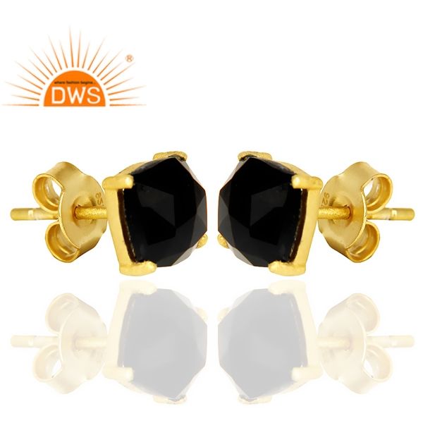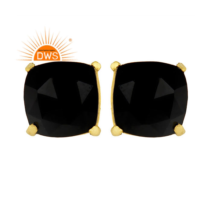 Black Onyx Gemstone Prong Set Earrings Women's 14k Gold Plated Sterling Silver Stud Earrings Supplier Jewelry