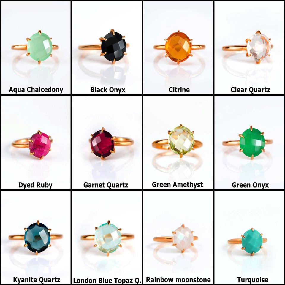 Black Onyx Gold Plated Birthstone Ring 925 Sterling Silver Dainty Round Gemstone Ring Ring Size 8mm Gift for Her