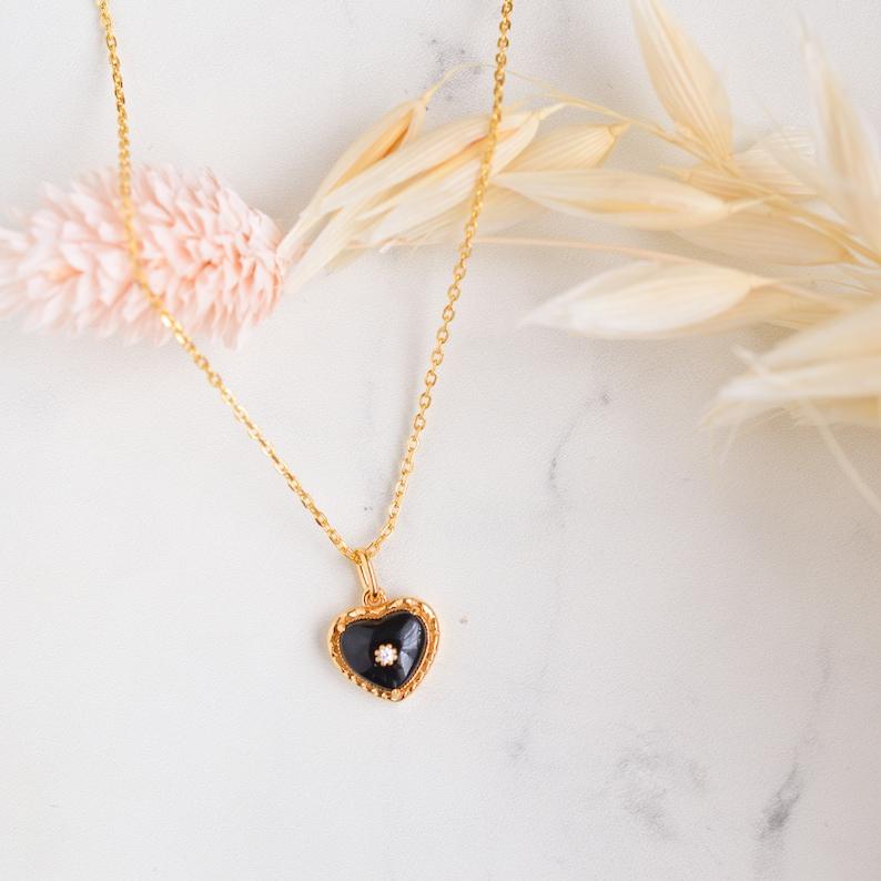Black Onyx Heart Necklace 925 Sterling Silver 14K Gold Plated Gemstone Pendant Jewelry Gift For Her