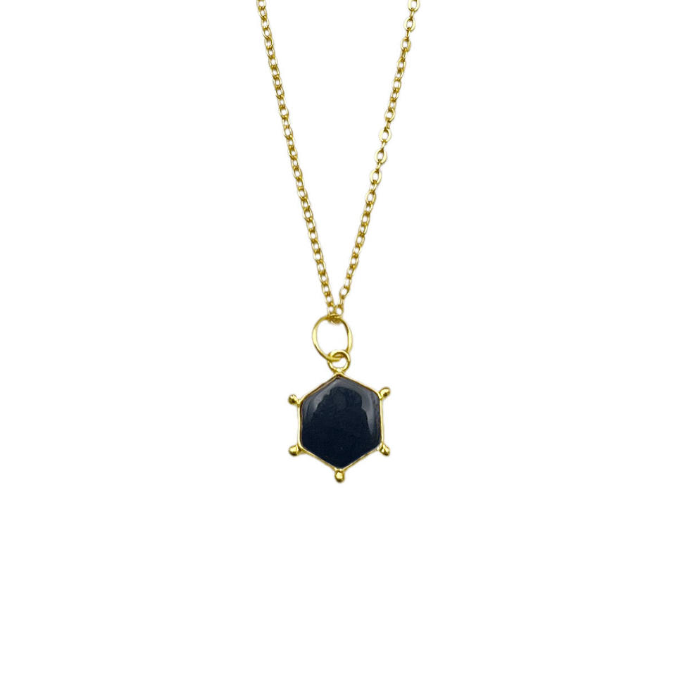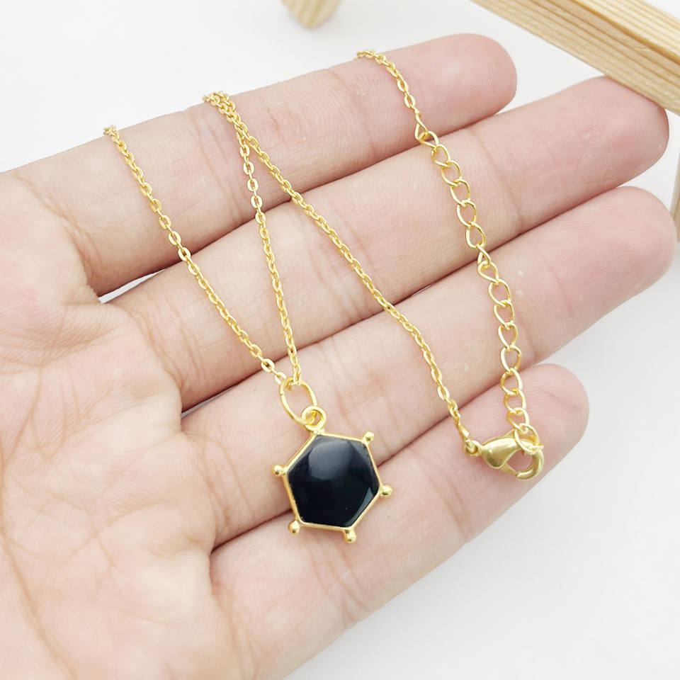 Black Onyx Hexagon Wheel Pendant Necklace Gold Vermeil Bezel Set 10mm Natural Gemstone Handmade Jewelry Necklace Gift For Women