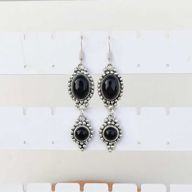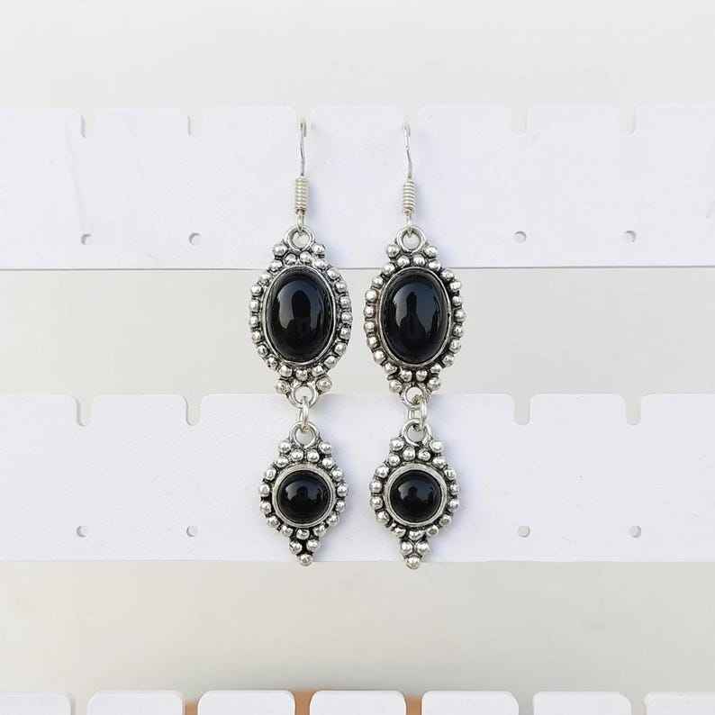Black Onyx Multi Stone Dangle Drop Earrings 925 Silver Plated Ear Wire Crystal Design Handmade Boho Jewelry Gift for Her