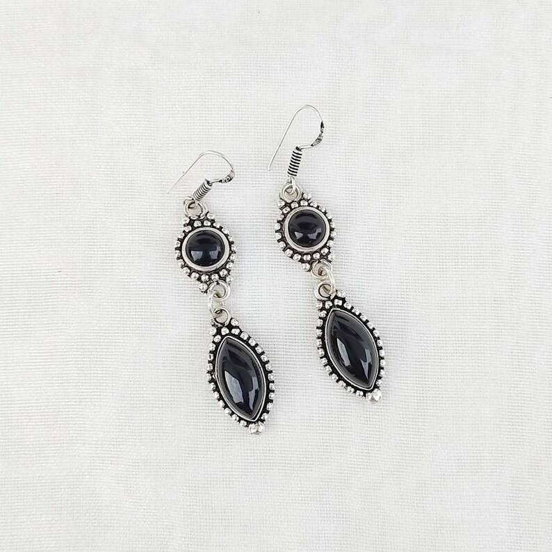 Black Onyx Multi Stone Earrings 925 Silver Plated Ear Wire Crystal Dangle Handmade Boho Jewelry Elegant Womens Accessory