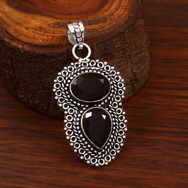 Black Onyx Pendant 925 Sterling Silver Handmade Vintage Necklace Elegant Birthday Gift For Her Him Unisex Jewelry