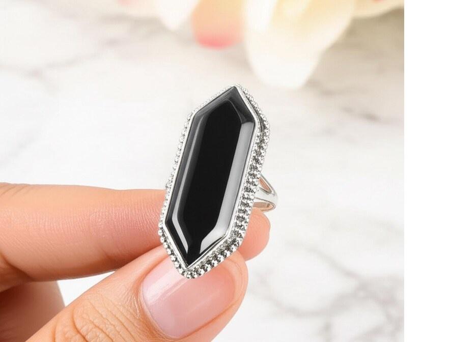 Black Onyx Ring 925 Sterling Silver Large Gemstone Statement Ring Boho Healing Jewelry for Women Gift for Her