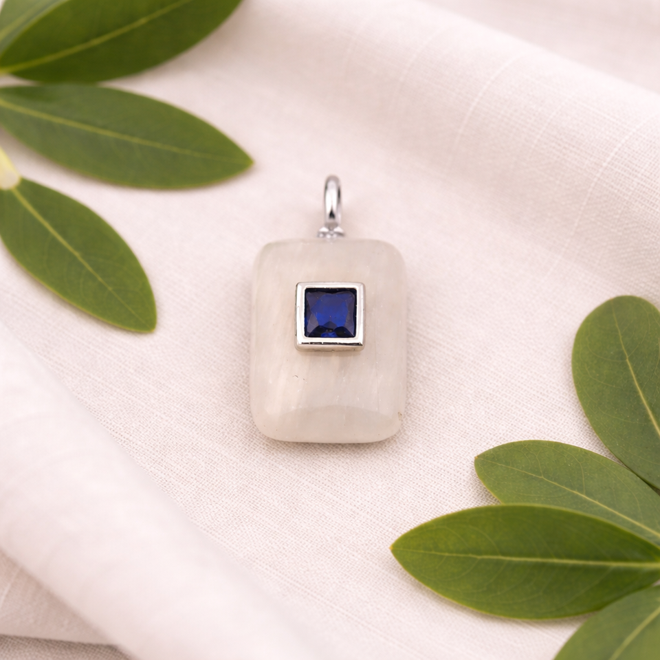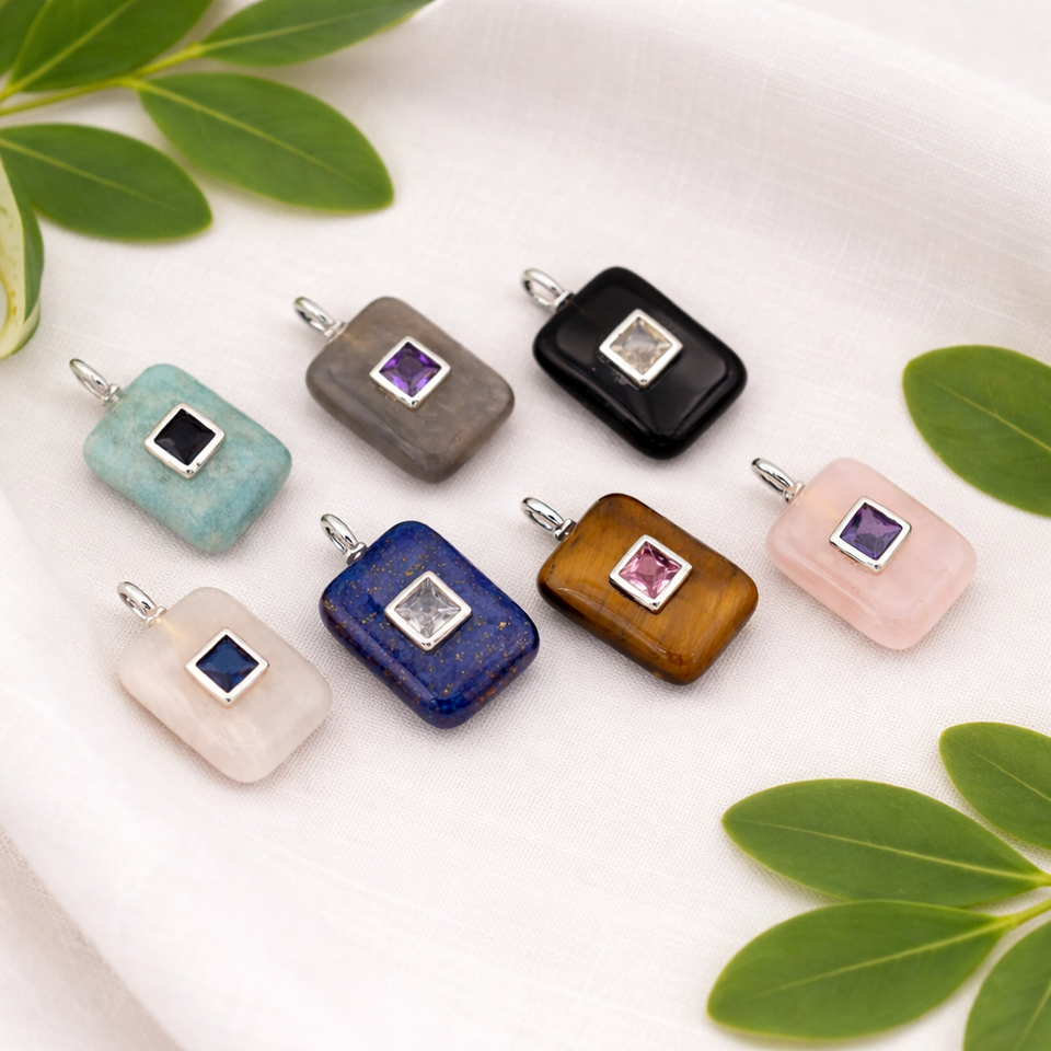 Black Onyx Rounded Rectangle Pendant Silver Plated Bezel Set Square Zircon Charm Handmade Jewelry Connector Wholesale