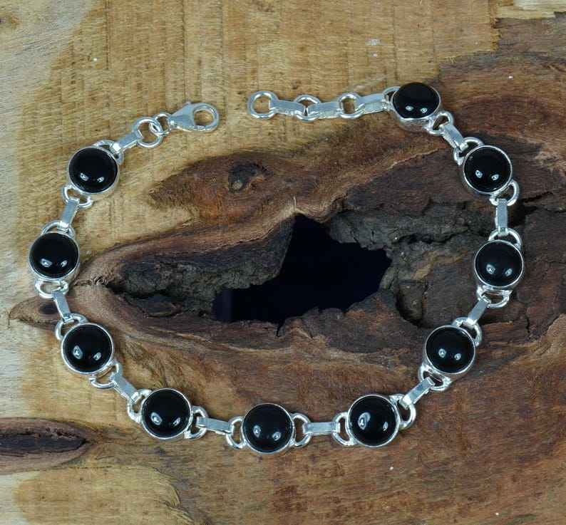 Black Onyx Sterling Silver Adjustable Bracelet Handmade Gemstone Jewelry For Women And Men