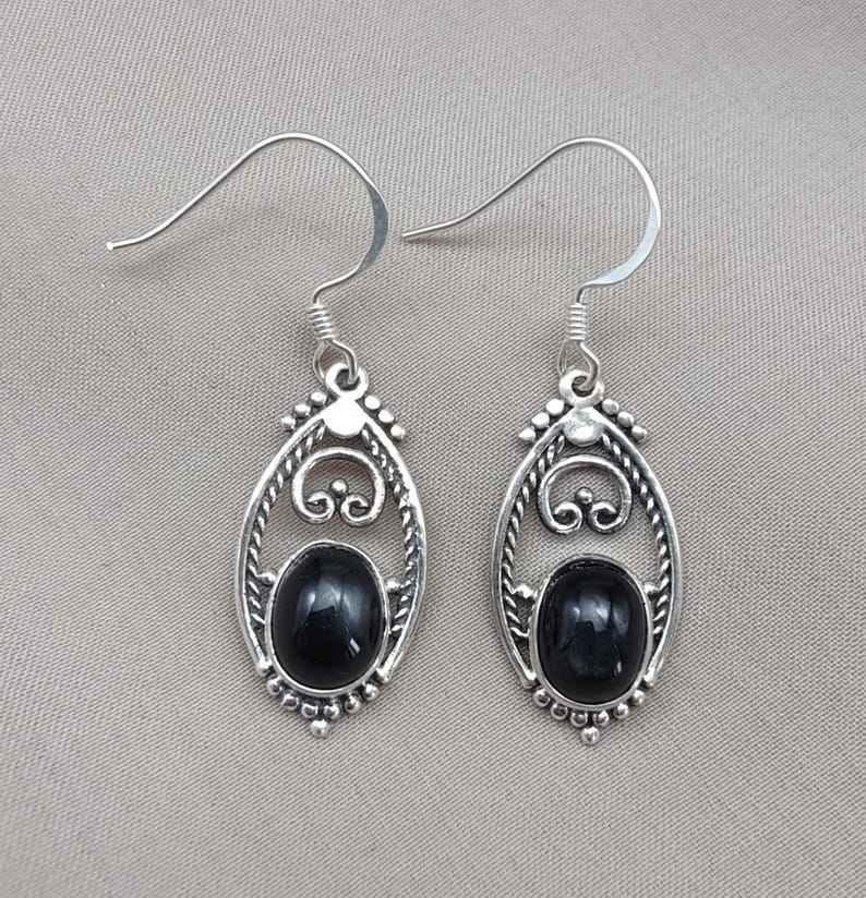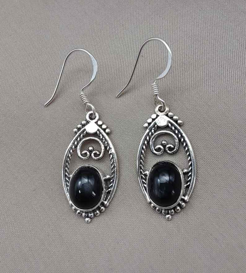 Keyword:Black Onyx 925 Made Sliver Earrings Black Onyx Stones
