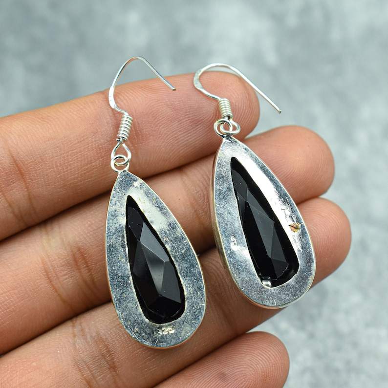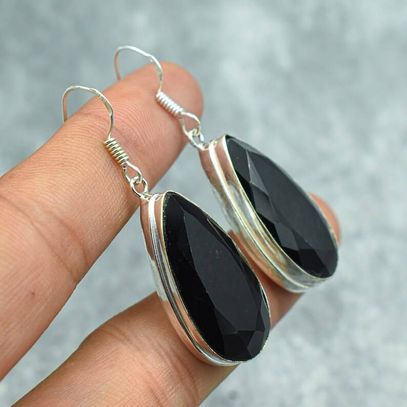 Black Onyx Stud Earrings With Sparkling Dangle Gemstone Jewelry